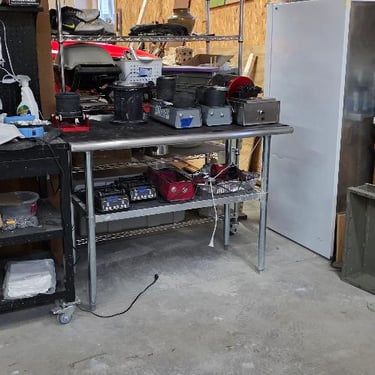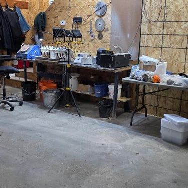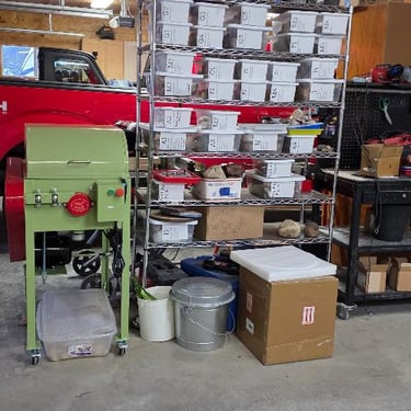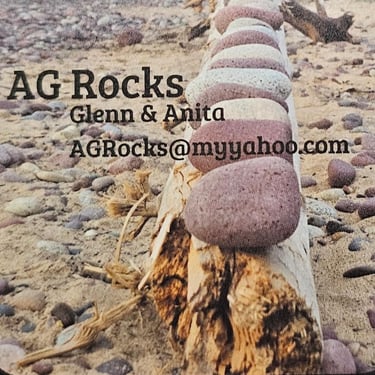 Then Glenn caught the bug!!! He bought me a 12 lbs. tumbler, another single barrel tumbler for polish only, then a 10-inch trim saw from Hi-Tech Diamond and then we got a Cab King from Kingsley North and a slant lap cabber, then a Hi-Tech Diamond 5-inch trim saw needless to say, we are now a small business. We made a few trips to Lake Superior, Lake Michigan, a few local spots and a secret location locally (thanks Linda!) and started to really pick up rocks and stones. We also made several purchases from other rock, mineral, and gem shops to get us amped up. We did a couple of fair sized craft shows and did well. That was more than enough for Glenn to decide "ok, this is what we are gonna do in our retirement." Bless his heart-I work as much or more now than I did while I was employed outside the home and so does he! He purchased a 16-inch slab saw from Highland Park Lapidary and we have been slabbing away! What you see in our website shop is our beginning on-line business, as well as our newer Etsy page (anitarasner). We hope that with your support we can continue to grow and fulfil all our (yours and ours) rock dreams!